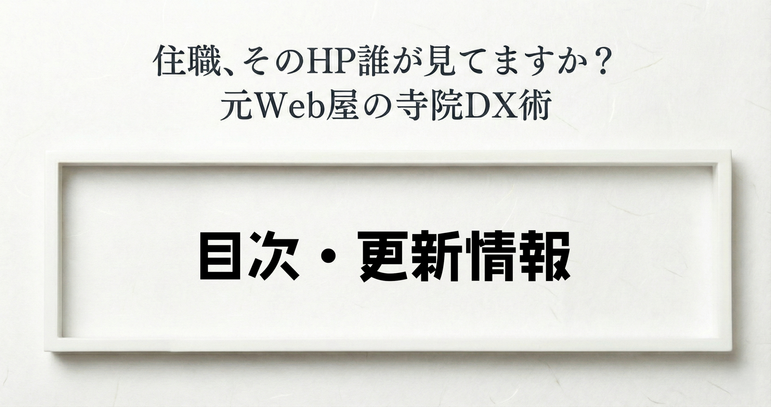 【目次・更新情報】住職、そのHP誰が見てますか?元Web屋の寺院DX術